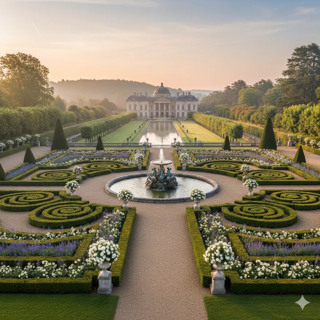 A structured formal garden featuring geometric patterns, carefully selected plantings, and classical design principles that create visual harmony and elegance.