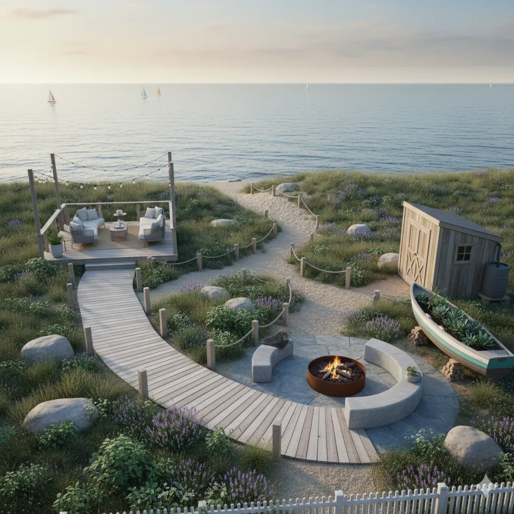 A coastal-inspired yard transformation that embraces natural elements, salt-tolerant plants, and open spaces that capture the essence of seaside living.